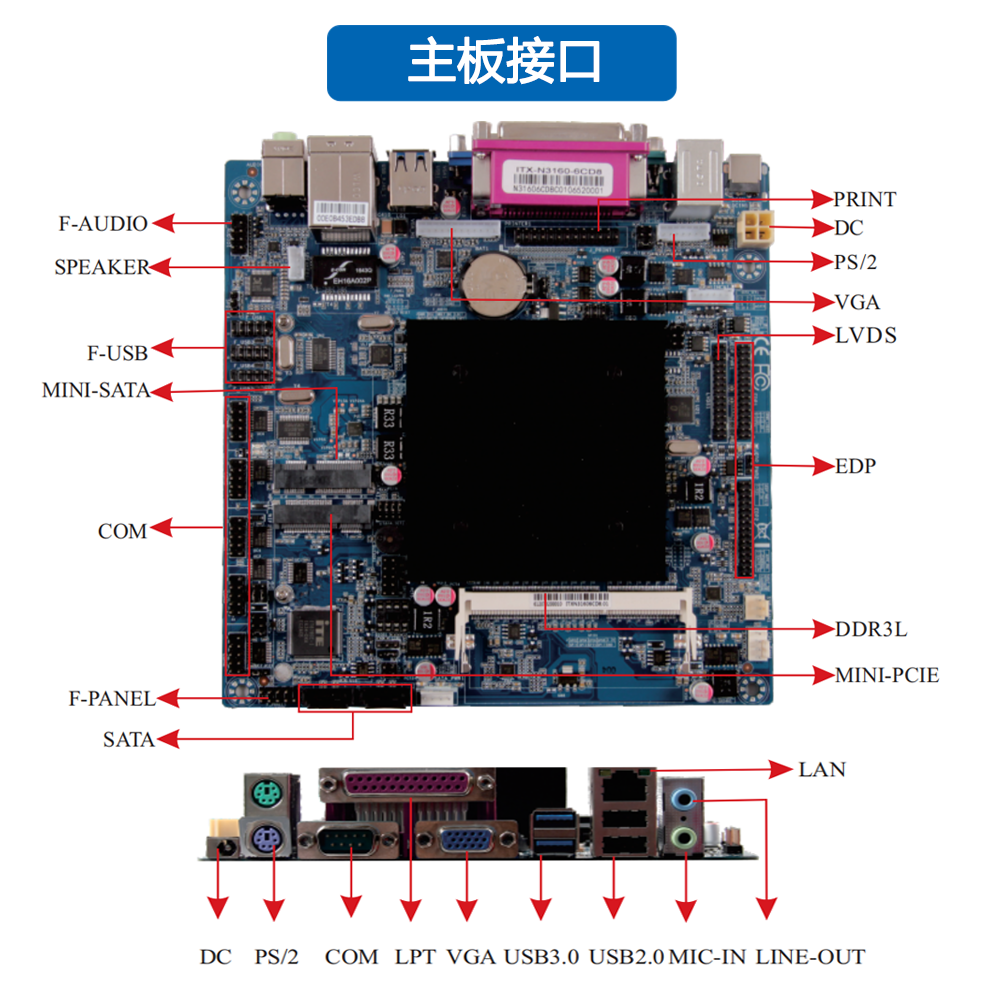 支持Intel Celeron 处理器,J 3160板载VGA/LVDS/EDP显示内建HD显卡,高清显示集成ALC662声道,板载功放内建1*Mini PCIe/SIM扩展槽,支持4G/Wifi内建1*M-sata,2*SATA3.0支持2*USB3.0 8*USB 2.0(6*USB2.0需扩展)支持6*COMDC+ 供电