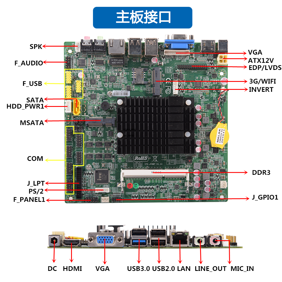 板贴Intel® Bay Trail J1800(可选J1900) 双核2.41GHz CPU,可睿频至2.58GHzVGA, LVDS(EDP)支持同步/异步双显功能2COM RS-232,COM1兼容RS-485,,8 USB 2.0, 1 USB 3.0, 8-bit GPIO, WIFI, 3G, SSD板载功放,提供数字音频SPDIF支持无盘启动,网络唤醒,上电开机,定时开机板载集成Intel HD4000显示核心