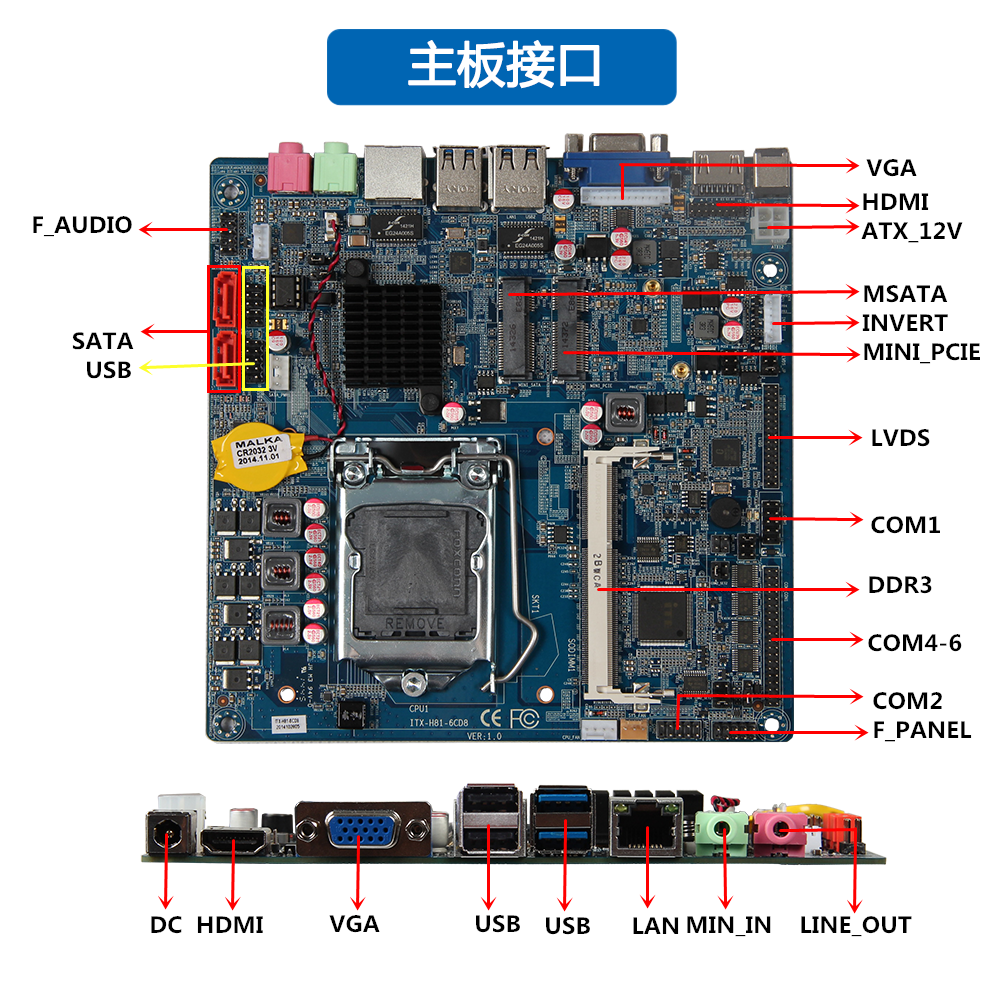 6COM可扩展 1* RS-485、 6USB2.0、2USB3.0 支持SSD